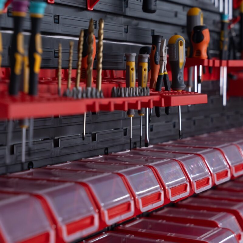 Stěna na nářadí 1152×780 mm – 23 boxů s držáky