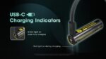 NITECORE 18650 Li-ion 3600 mAh baterie s nabíjecím portem USB-C. Nabíjecí port USB-C umožňuje nabíjet baterii přímo pomocí připojeného kabelu USB-C.