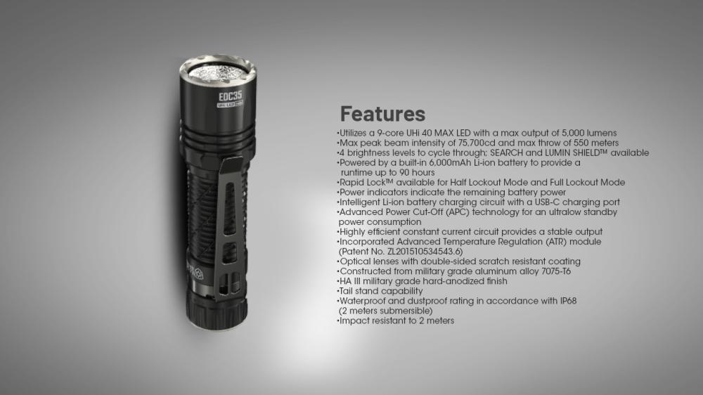 – Optimalizovaný, mimořádně přesný design reflektoru poskytuje delší paprsek než konkurenční produkty.
