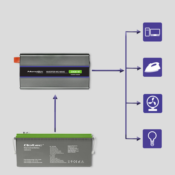 Měnič napětí Monolith | 12V na 230V | 1000/2000W | USB