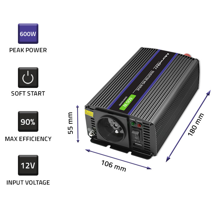 Měnič napětí Monolith | 12V na 230V | 300/600W | USB