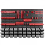 Sestava stěny na nářadí 1152×780 mm – 30 uuzavíratelných boxů s držáky obsahuje: