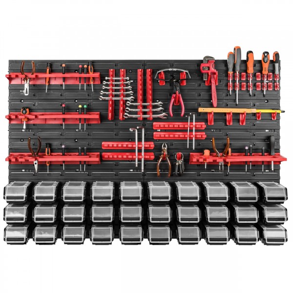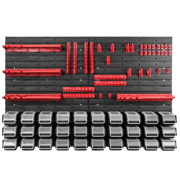 Stěna na nářadí 1152×780 mm – 30 uzavíratelných boxů s držáky