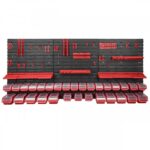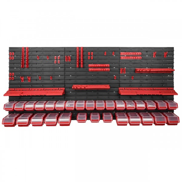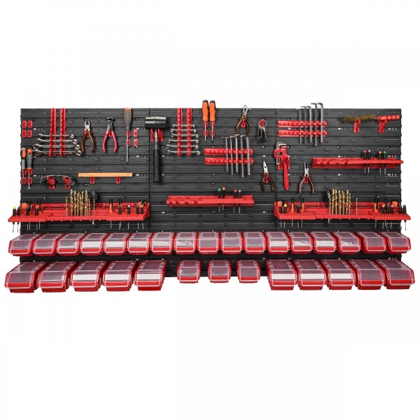 Sestava stěny na nářadí 1728×780 mm – 30 uzavíratelných boxů s držáky obsahuje: