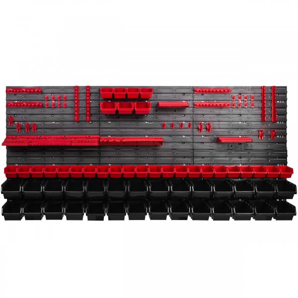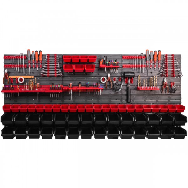 Sestava stěny na nářadí 1728×780 mm – 57 boxov s držáky obsahuje: