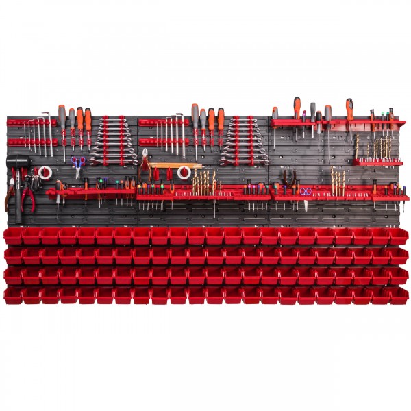 Sestava stěny na nářadí 1728×780 mm – 88 boxů s držáky obsahuje: