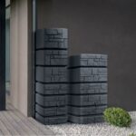 • Moderní, dekorativní nádrž na dešťovou vodu s imitací kamene v světle šedé barvě.